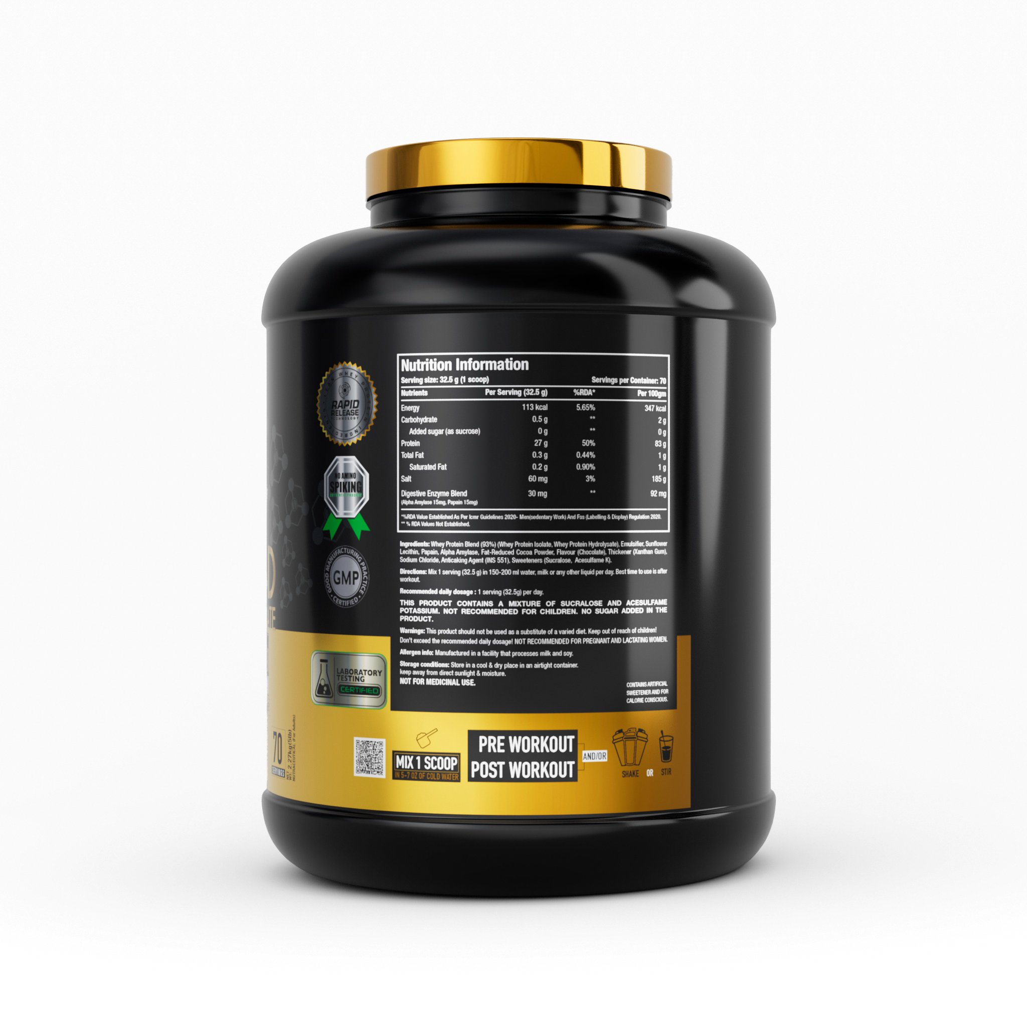 Directions: Mix 1 serving (30 g) in 300 ml water, milk or any other liquid per day. Best time to use it after the workout.